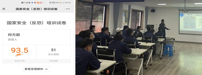 公司以部門、組別為單位,組織全體員工認真學習《反恐怖主義法》《刑法》《國家安全法》等相關法律法規(guī),并開展線上反恐理論知識答題考核,進一步鞏固提升全員安全反恐防爆知識和能力。