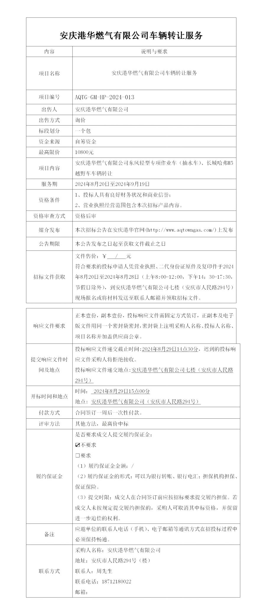 安慶港華燃氣有限公司車輛轉讓服務