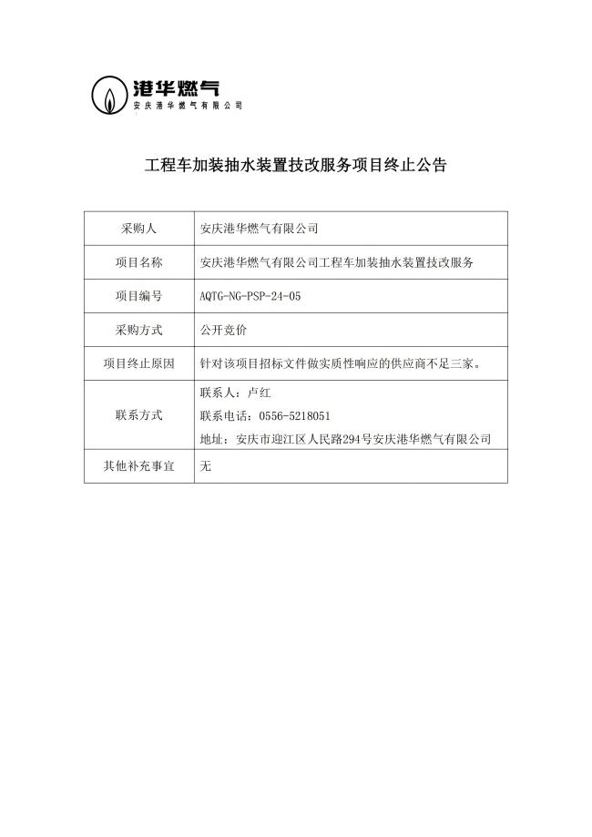 工程車加裝抽水裝置技改服務(wù)項目終止公告