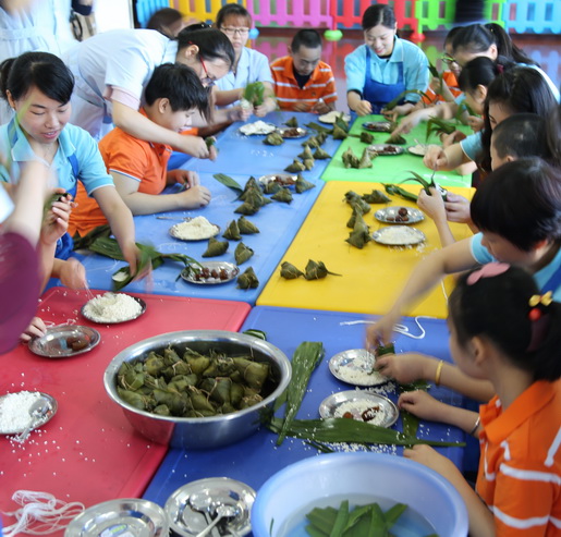 活動中,學校負責人潘金云帶領義工隊員們參觀了康復中心并介紹情況,得知為了幫助這群折翼的天使塑造“心理健康、身體健康、社會活動能力、就業(yè)能力”,康復中心每一位老師所付出艱辛和努力的故事后,大家深受感動。聯(lián)誼中,孩子們被熱烈的氣氛感染,認真地表演了黃梅戲選段、詩朗誦等才藝,展現(xiàn)出的自信、堅強和堅持,深深地感動了在場的每一位義工隊員。聯(lián)誼后,義工隊員們一邊與孩子們耐心交流,一邊手把手地交孩子們包裹蜜棗愛心粽,看著自己包出來的勞動成果,孩子們個個笑開了花,現(xiàn)場呈現(xiàn)出一片其樂融融的景象。
