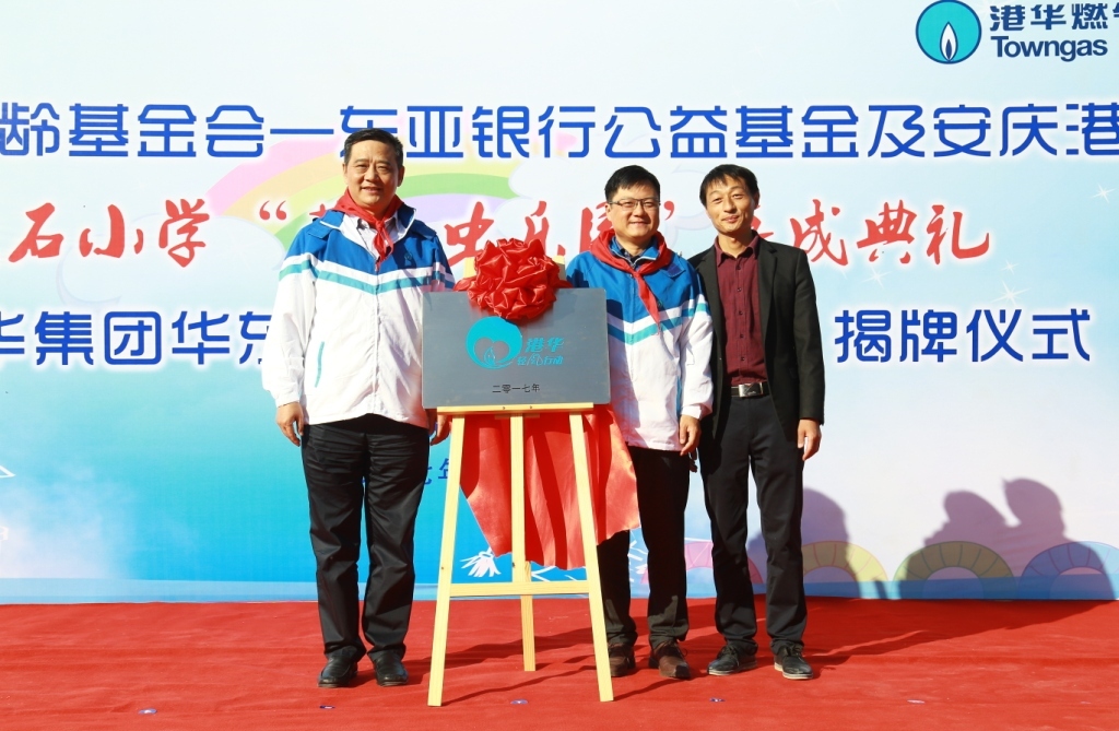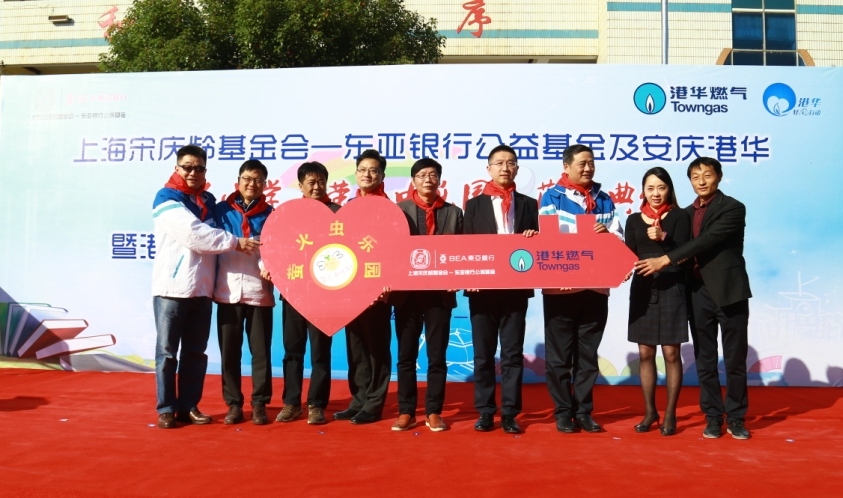 111日,港華燃?xì)饧瘓F(tuán)攜手上海宋慶齡基金會(huì)—東亞銀行公益基金,在太湖縣大石小學(xué)舉行“螢火蟲(chóng)樂(lè)園”落成典禮暨港華集團(tuán)華東地區(qū)“輕風(fēng)行動(dòng)”揭牌儀式。來(lái)自安慶市扶貧辦、市住建委、太湖縣政府、縣教育局的有關(guān)領(lǐng)導(dǎo),以及東亞銀行(中國(guó))、港華燃?xì)饧瘓F(tuán)、港華集團(tuán)華東義工總隊(duì)、安慶港華燃?xì)獾?/span>70余位嘉賓和義工出席并見(jiàn)證了典禮儀式。
